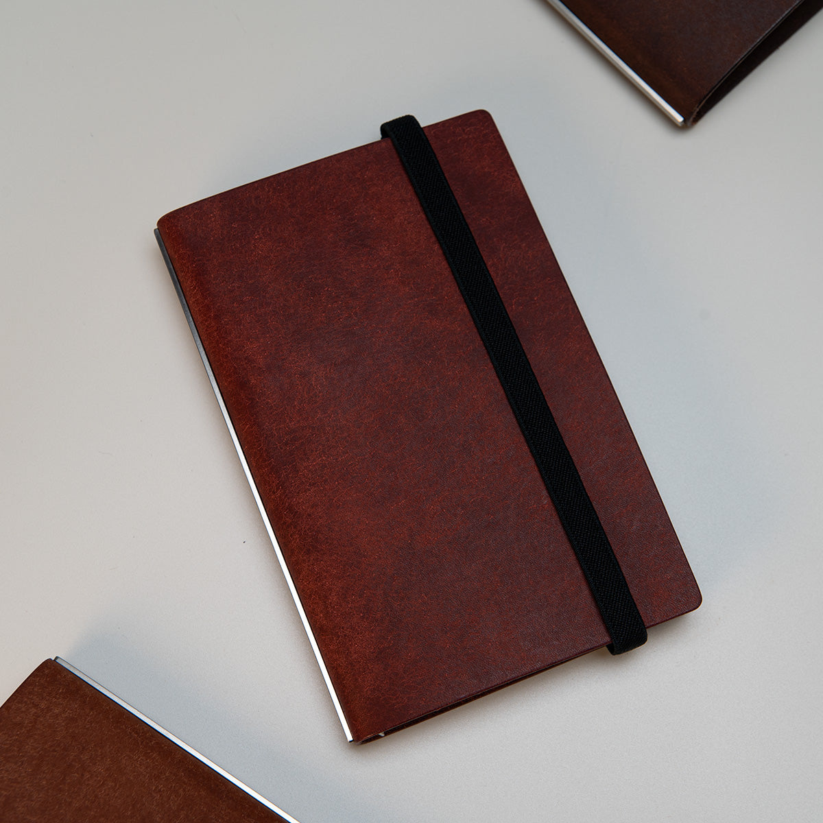 Choose from stainless steel silver, gold-plated, or raw brass spines — each offering a distinct aesthetic. Our raw brass spine will naturally oxidize over time, developing a beautiful aged patina unique to your use.